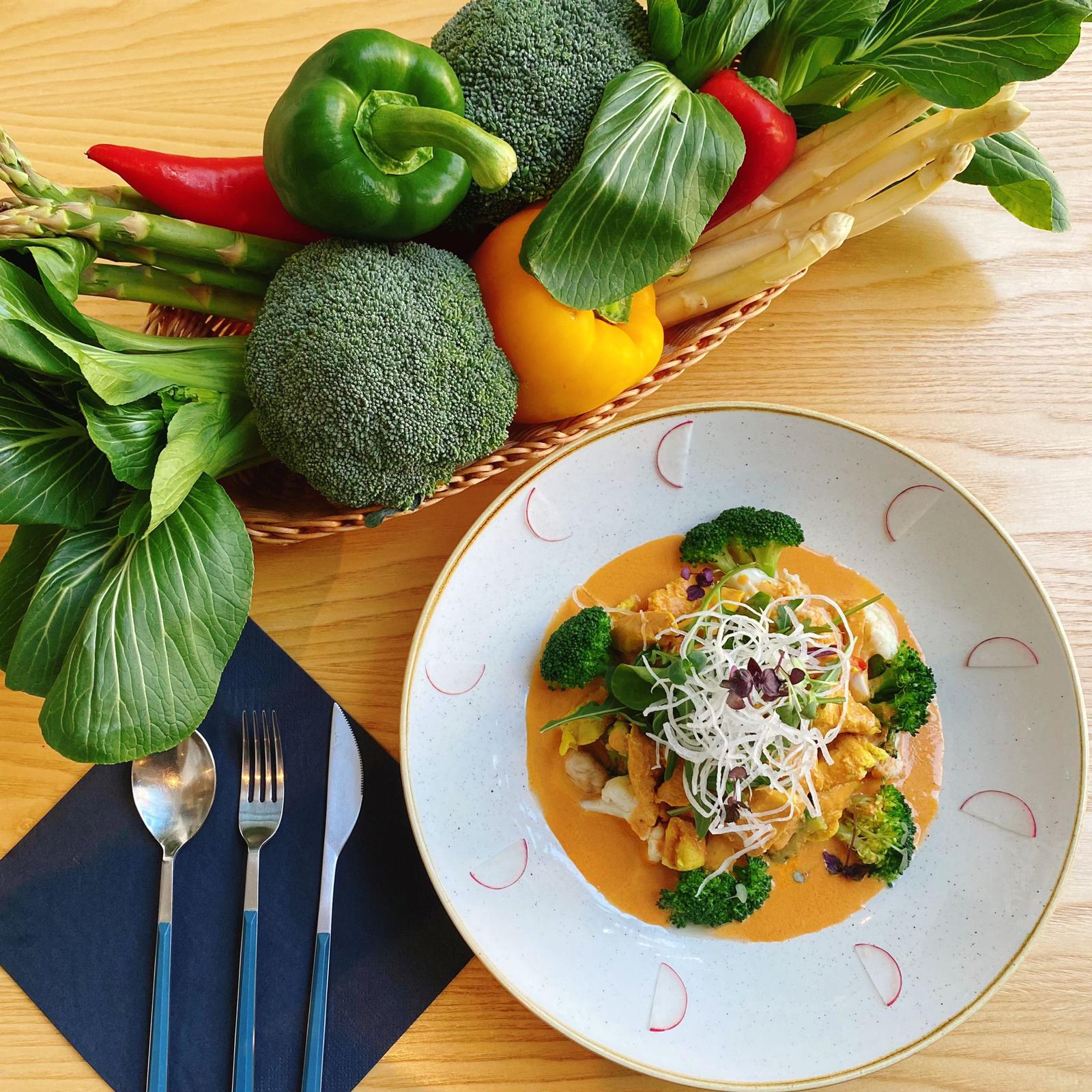 Chicken curry bathed in creamy coconut milk-based sauce. Loaded with flavorful chicken and veggies