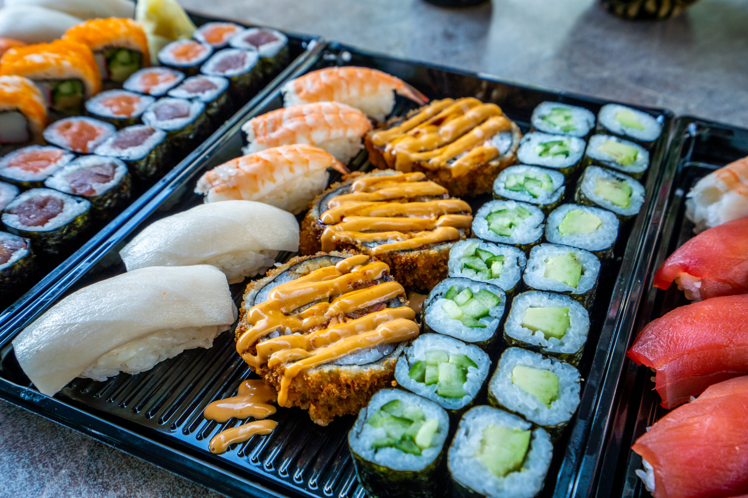 Variations for 4 people: 16 nigiri, 32 maki, 4 inside-out, 12 special rolls, with a small seaweed salad